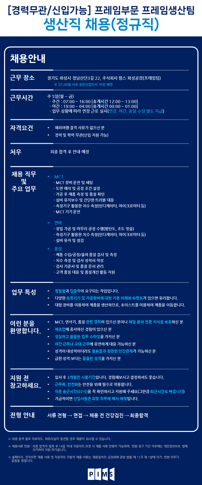 프레임부문 프레임생산팀 생산직 채용(정규직)