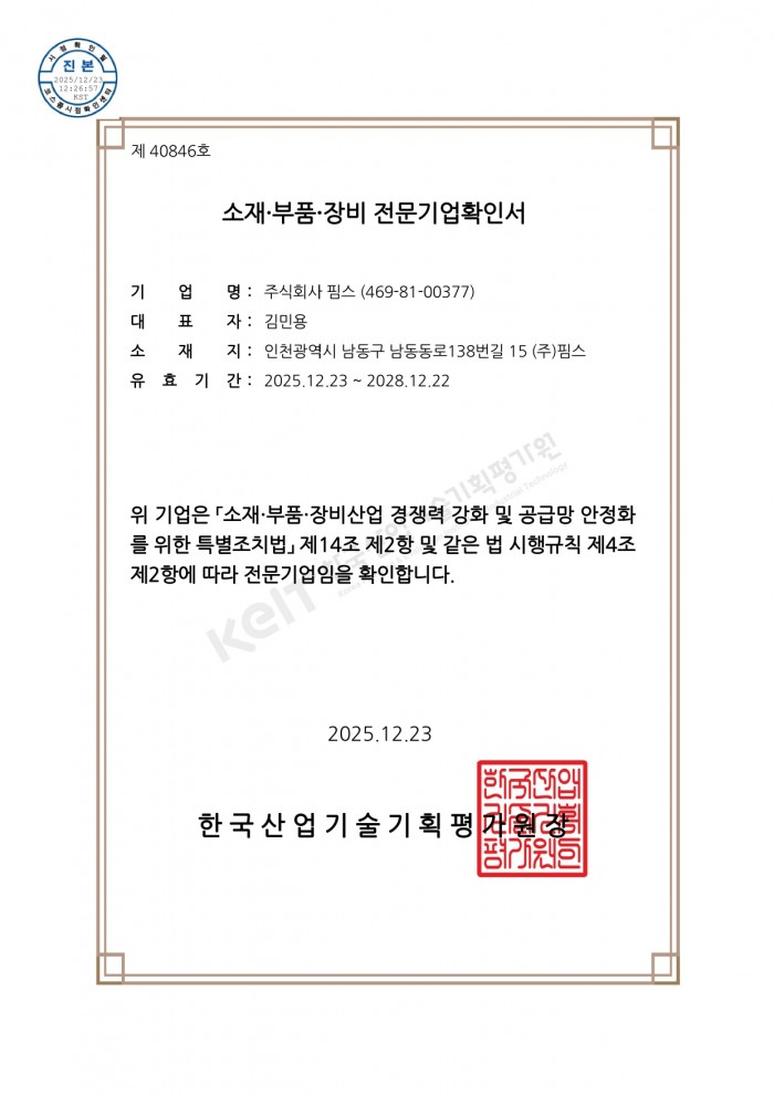 [Certification] 소재부품장비 전문기업 확인서