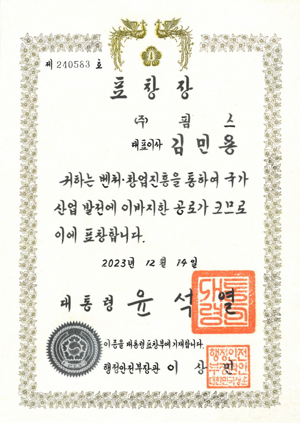 [수상] 벤처창업진흥유공표창